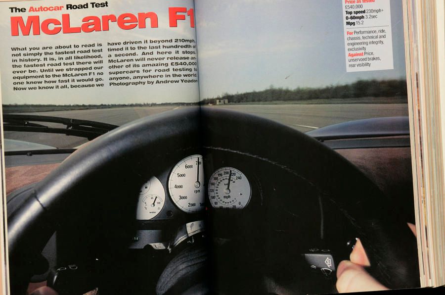 The famous 1994 road test of the McLaren F1 for Autocar. Credit: Autocar