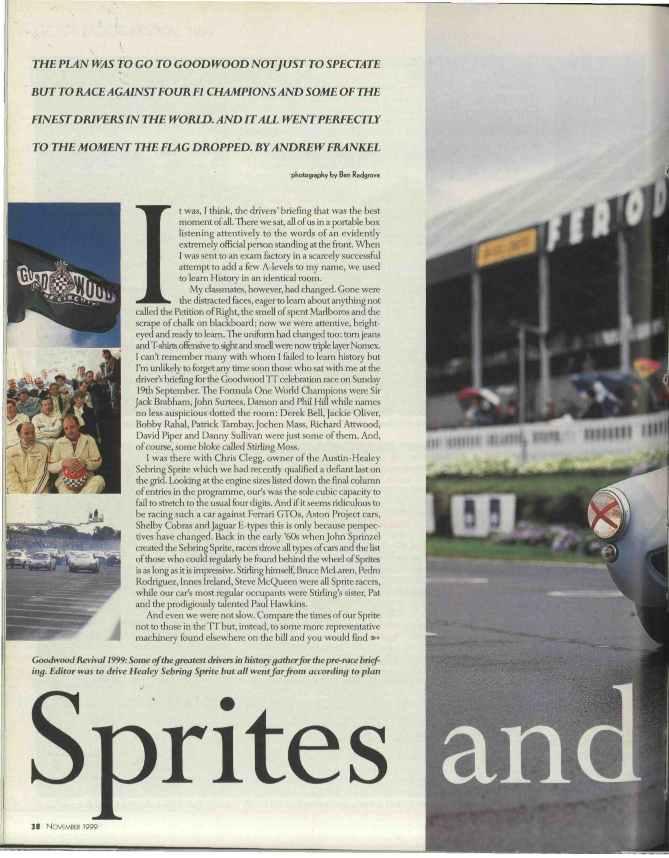 The article in MotorSport following the 1999 Goodwood Revival TT in the editor's father's Austin Healey Sebring Sprite. Credit: MotorSport