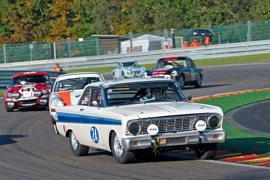 Racing with Chris Harris in a Ford Falcon at the Spa 6 Hours. Credit: GRRC