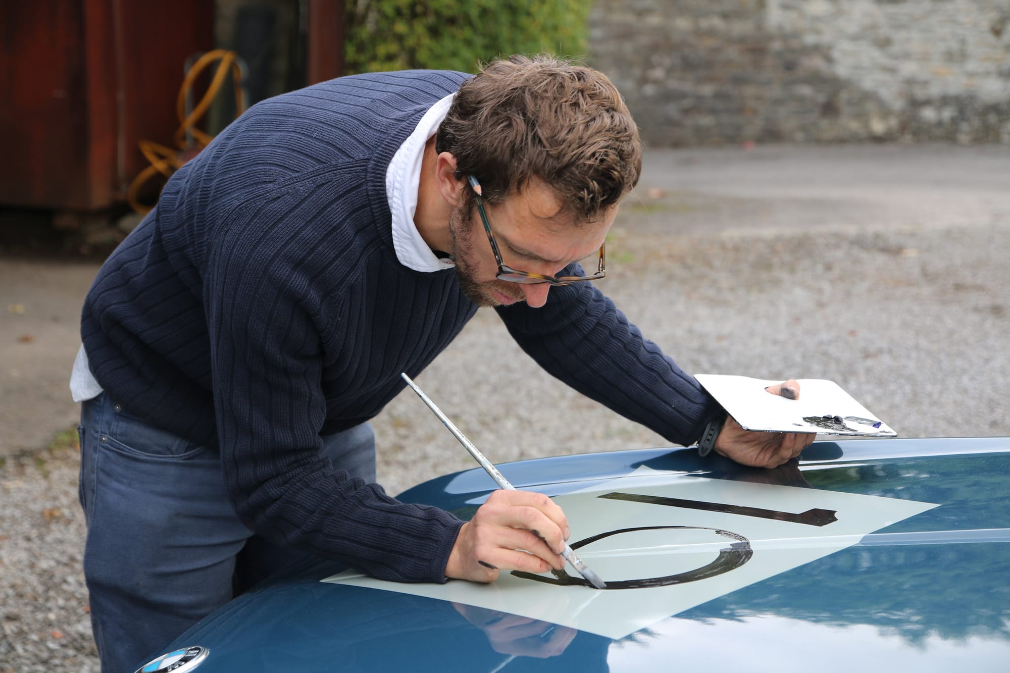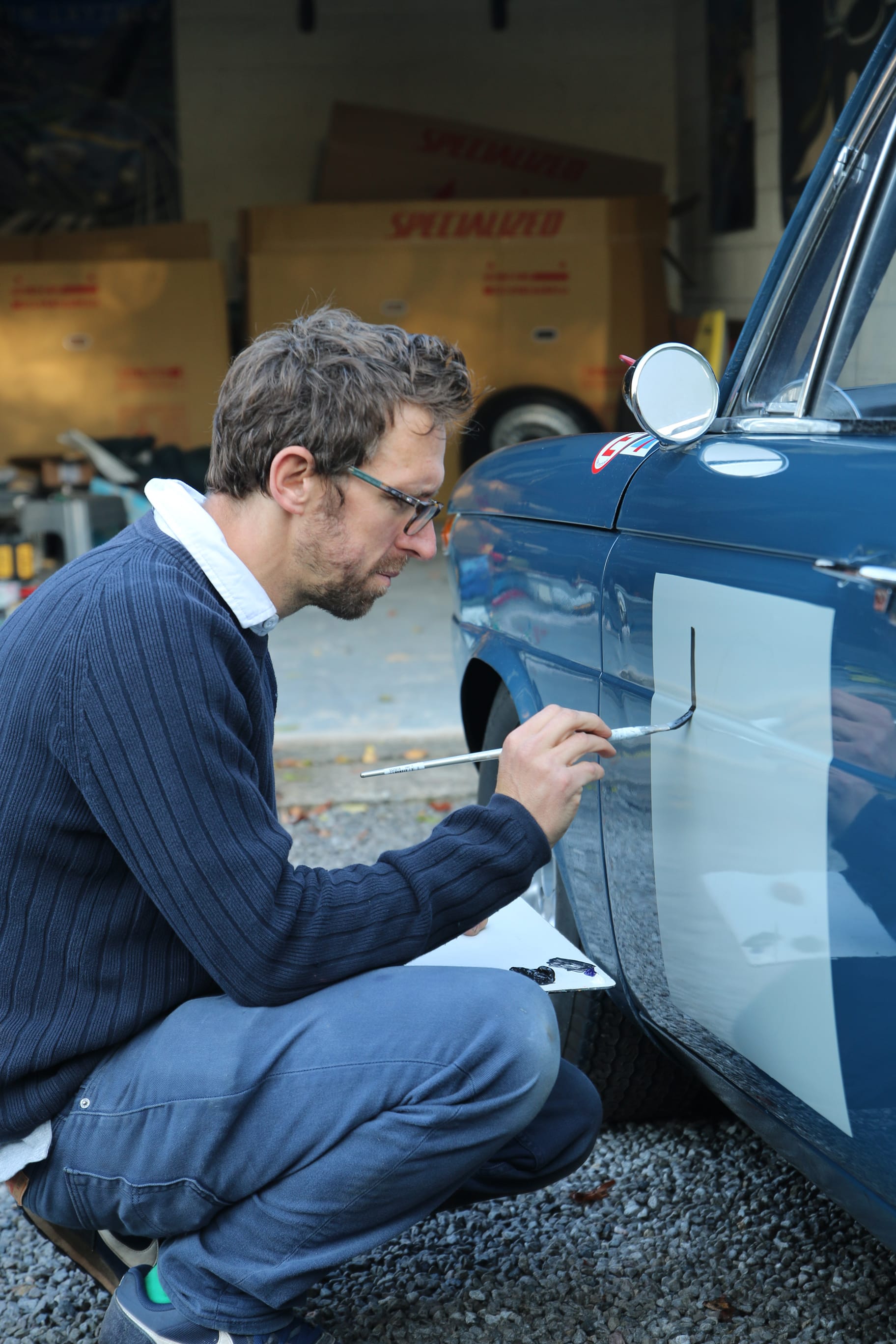 I have thought about doing it. Quite a few people have asked me, and for whatever reason I've just not gone around to doing it. I did kind of think oh, should I paint my own car and race it at the Revival and race it as an art car, that might be quite cool, but I haven't done it yet. I paint all my own numbers on, so my race numbers and roundels and things are all painted on. I haven't got as far as doing the whole thing. I'm a big believer in painting your numbers on. I always get frustrated, not to go off on a tangent too much, but I get frustrated by really nice cars, and I mean really nice cars like multi-million pound Ferraris and whatever else, then they've just got stickered numbers on and you just think, don't do that. It can look so much better, like the Mille Miglia, when they used to paint the numbers on. Those guys were obviously talented, but they were obviously doing a lot, so they kind of got into the swing of it, but they were fantastic. But that just looked so much better. I always paint numbers on the car because I just think it looks so much cooler, than just a sticker which you might have stuck on a Vauxhall Nova. I think if you've got a multi-million pound car and you've done that, it seems a bit strange.