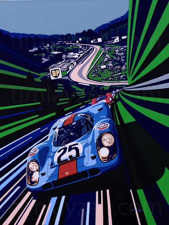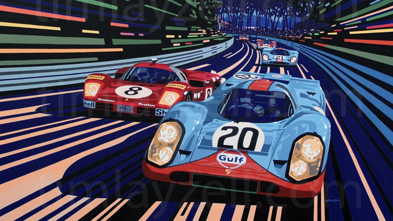In a small studio just south of Bath in the west of England, Tim Layzell immerses himself in the nostalgia of vintage racing, reviving its sounds, colours, speed, and danger with every brushstroke. In a relatively short time, Tim has risen to become one of the world's leading automotive artists, highly sought after by an expanding group of serious collectors for his distinctive, dynamic style and deep expertise in the subject. We caught up with him to discuss his signature style, and his own racing exploits.