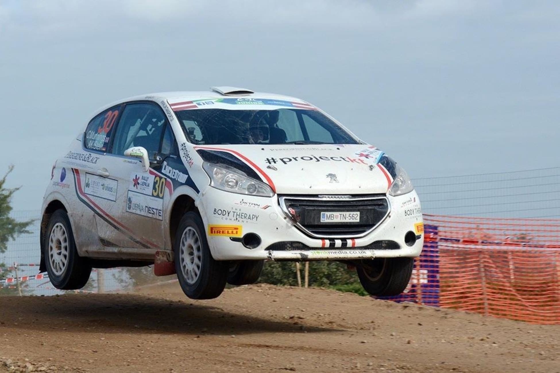 Catie competing in a Peugeot 208 R2. Credit: Matthieu Salvaing / Josef Petru