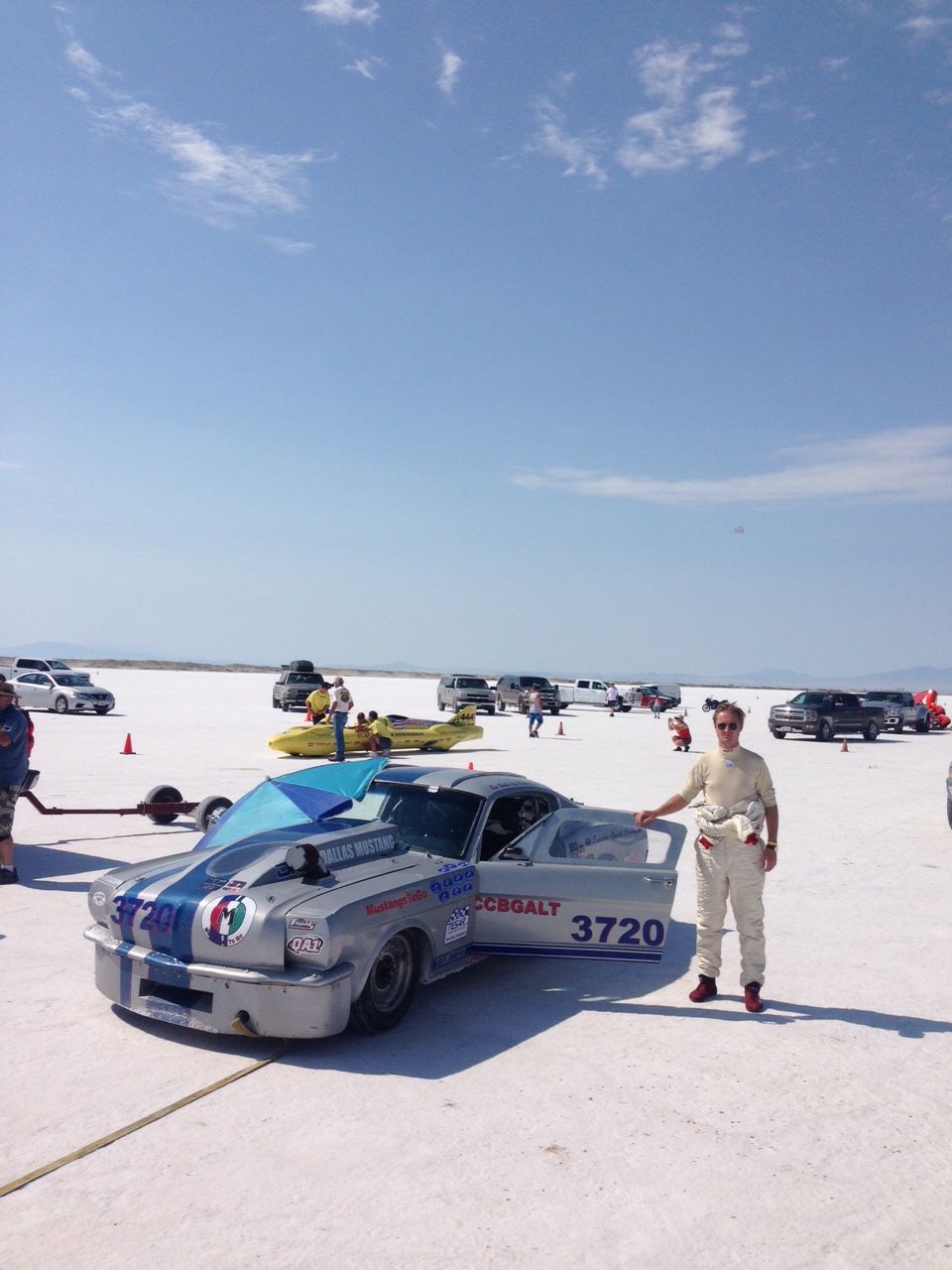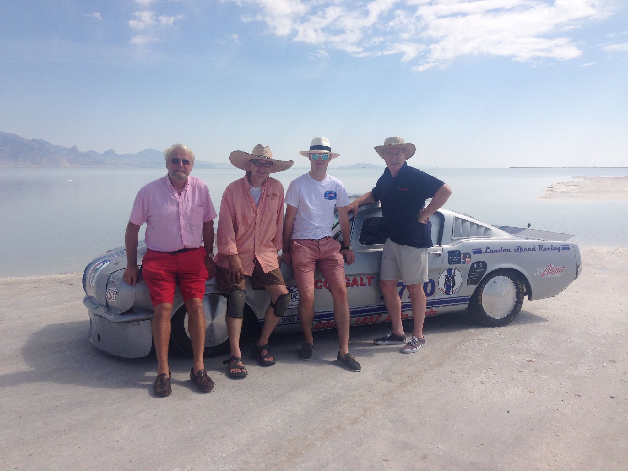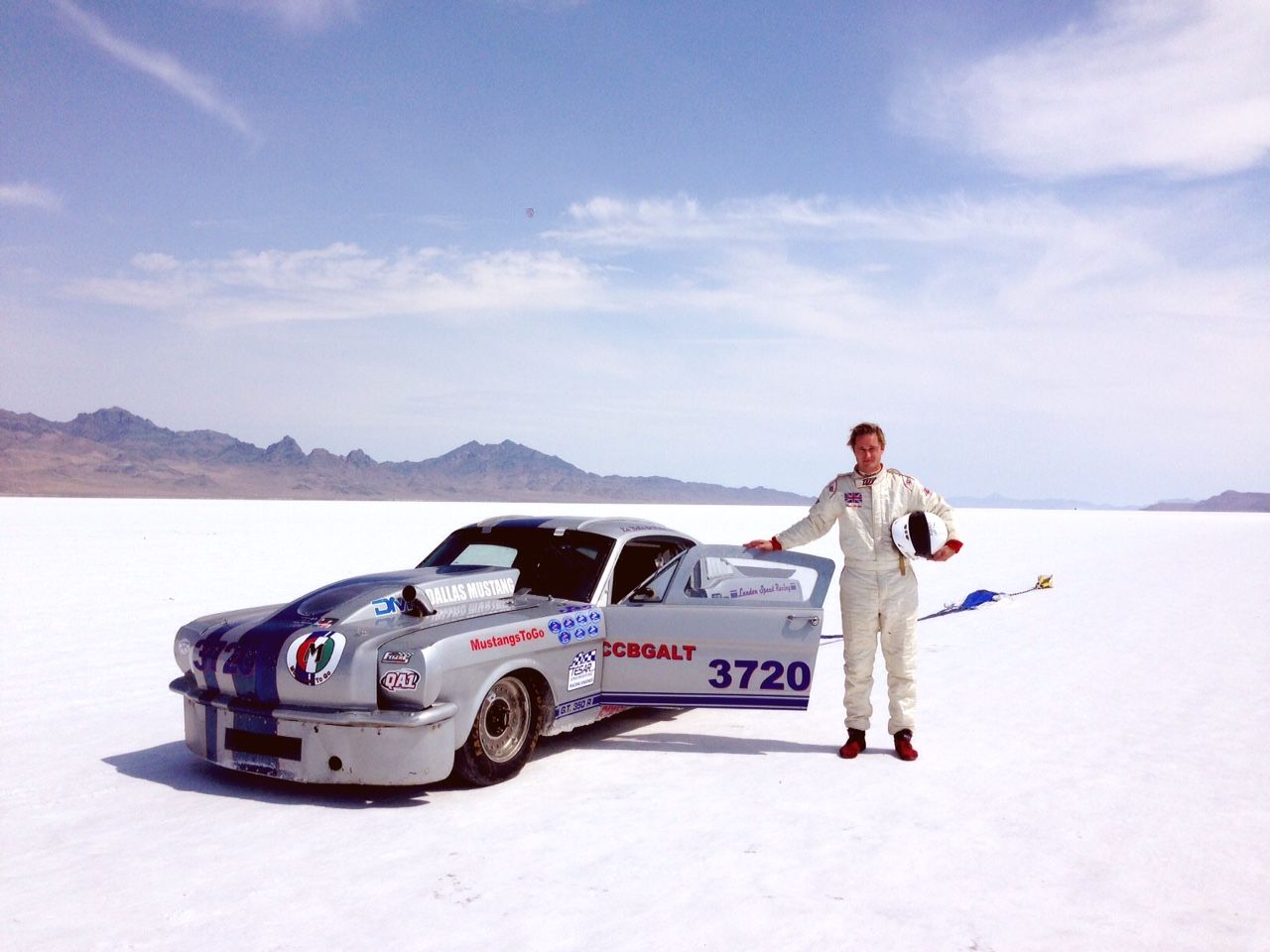 With the 1,200hp 1965 Shelby Mustang GT350R at the Bonneville Salt Flats during Speed Week 2016. Source: Family Archives