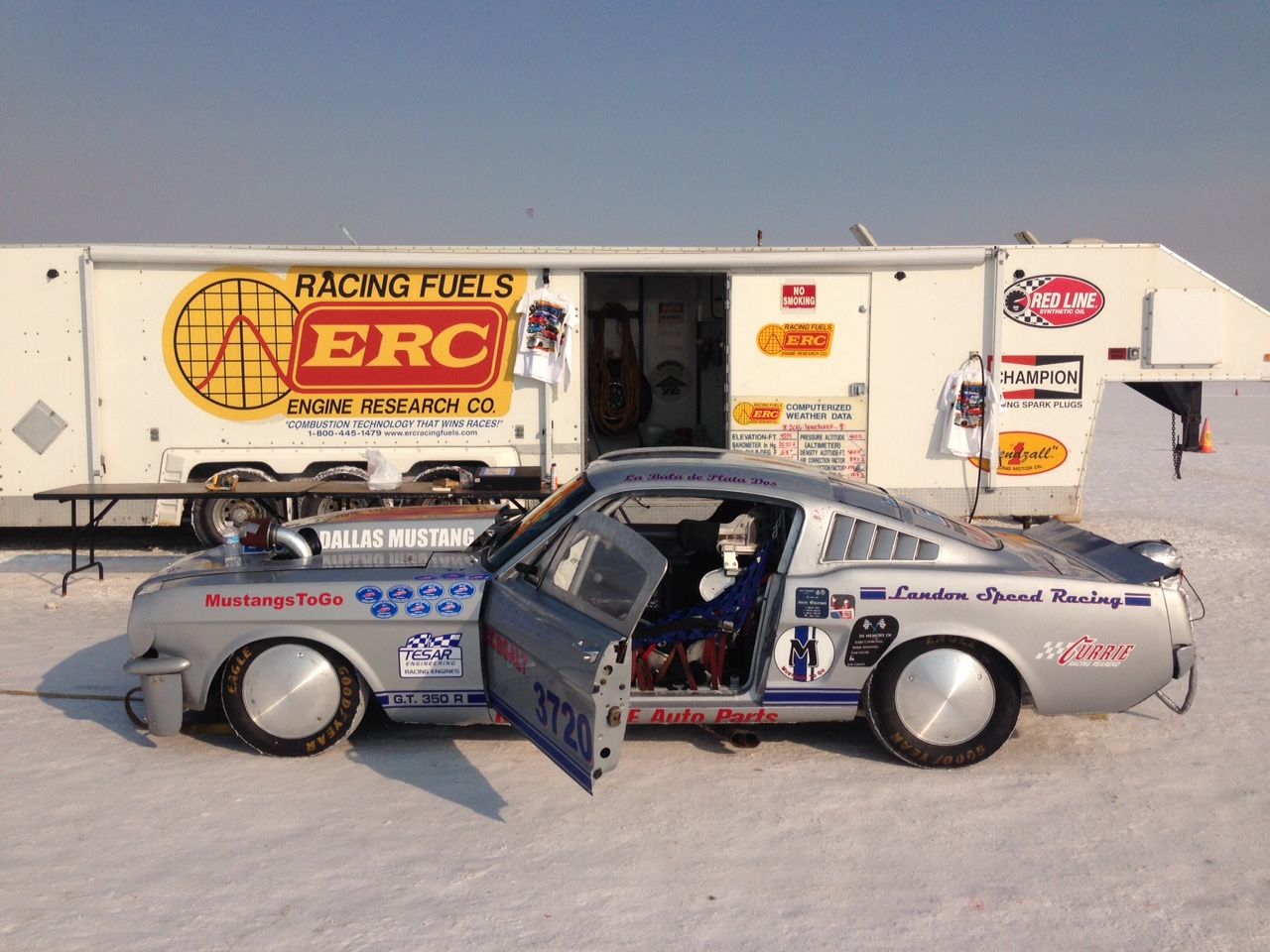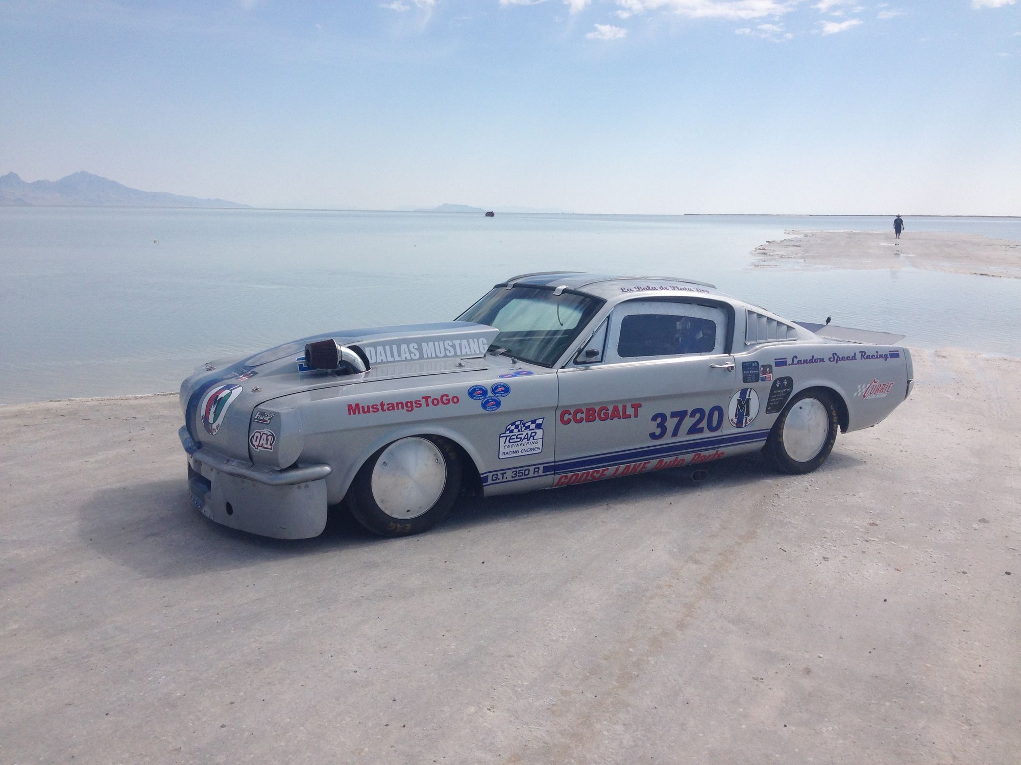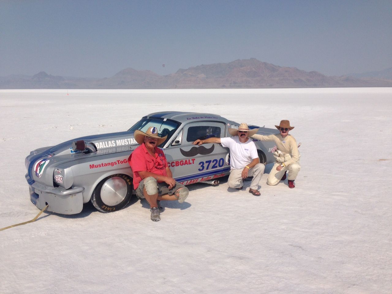 With the 1,200hp 1965 Shelby Mustang GT350R at the Bonneville Salt Flats during Speed Week 2016. Source: Family Archives