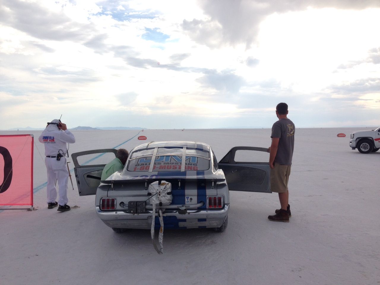 We finally got there in 2016. During Speed Week in August, you have a week to try and beat the record, and the first few days you have to do your licenses as a rookie. Initially I think it's 125 to 150 MPH, and you have to make sure you can safely pull the parachute after the finish line. Once you do that, you then go to the next stage of 150 to 175 MPH, and you get your next license. On the third day we started trying to go quickly, above 175 MPH, and then we hit mechanical issues. Anyway, on the last day of the week we finally cured all of them and had the car ready to roll, but annoyingly there was quite a bad cross wind that day. Obviously when you're trying to do 200 MPH in a Shelby Mustang, which is like a bungalow aerodynamics-wise, you can't have a side wind.