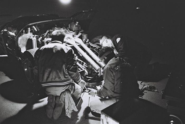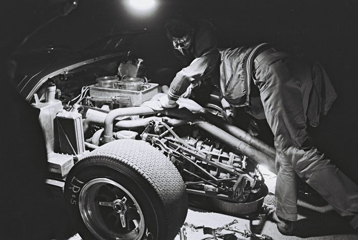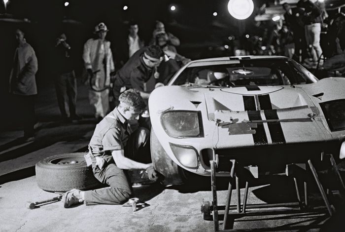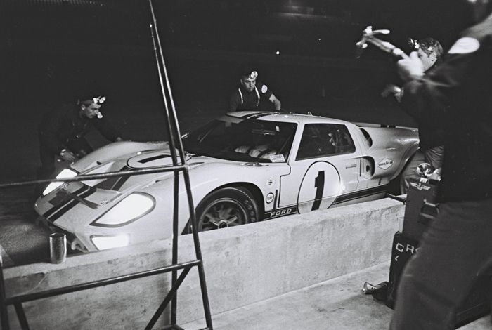 Fighting into the night, Ford mechanics replaced failing transmissions and conducted extensive repairs on a number of the Mk IIs. This only delayed the inevitable retirements. An engine failure took out the Gurney/Foyt Mk II after 464 laps; the McLaren/Bianchi car continued as the sole remaining Ford GT, occasionally overheating and no longer a serious contender.