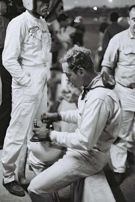 In qualifying, Dan Gurney and A.J. Foyt took pole position (just about) in their sprint-configured Ford GT Mk II - although the advantage of 0.26 seconds came at the price of a set of slick tyres and an engine replacement. Phil Hill’s Chaparral 2F (replete with curious aerodynamic wing) put in an excellent qualifying performance to take second on the grid. The Amon/Bandini factory Ferrari P4 could only muster 4th place, behind the surprisingly fast NART Ferrari 330 P3/4.