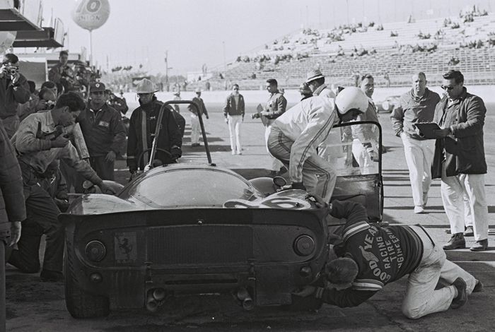 It was late 1966, and Enzo Ferrari was not a happy man. Courtesy of the Ford Motor Company, he had suffered three defeats of the most painful kind at Daytona, Sebring, and Le Mans. After millions of dollars spent and numerous battles on the world’s most celebrated race circuits, the 1966 World Sportscar Championship trophy was firmly in the hands of Henry Ford II. Rumours were spreading that Ferrari’s decade of dominance in endurance racing was over, and morale at the Maranello factory was low. Given the pressures of producing sports car prototypes, Formula 1 cars, V12 production cars and more in the face of labour disputes and parts shortages, it was not at all clear that Ferrari could stage a fightback in the 1967 season. As the 24 Hours of Daytona loomed, there was just one question on the mind of motorsports fans: what would Enzo Ferrari do?