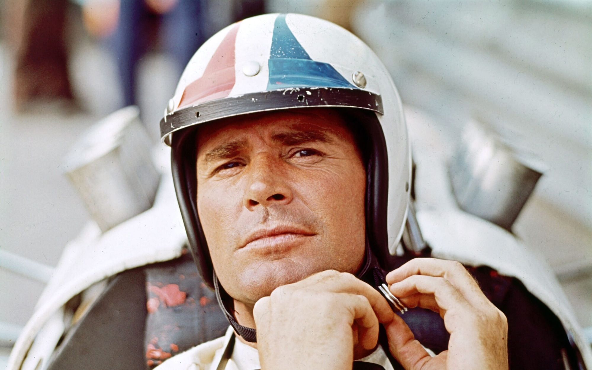 In his role as Pete Aron in John Frankenheimer’s wonderful 1966 film ‘Grand Prix’, James Garner found it easier than most of the other actors to play the part of a full-blooded F1 driver, gathering praise from the professional drivers present for his skills. Having spent significant time at Willow Springs Raceway in the hands of Bob Bondurant in preparation for the role, and six months during filming in the company of Phil Hill, Graham Hill, Fangio, Jim Clark, Jack Brabham, Dan Gurney, Ritchie Ginther and Bruce McLaren, Garner took his talents behind the wheel into the real world. His American International Racing team was the result, which began competing soon after the film’s release fielding L88 Corvettes and Lola T70s at Daytona and Sebring, alongside a number of Formula 5000 entries.