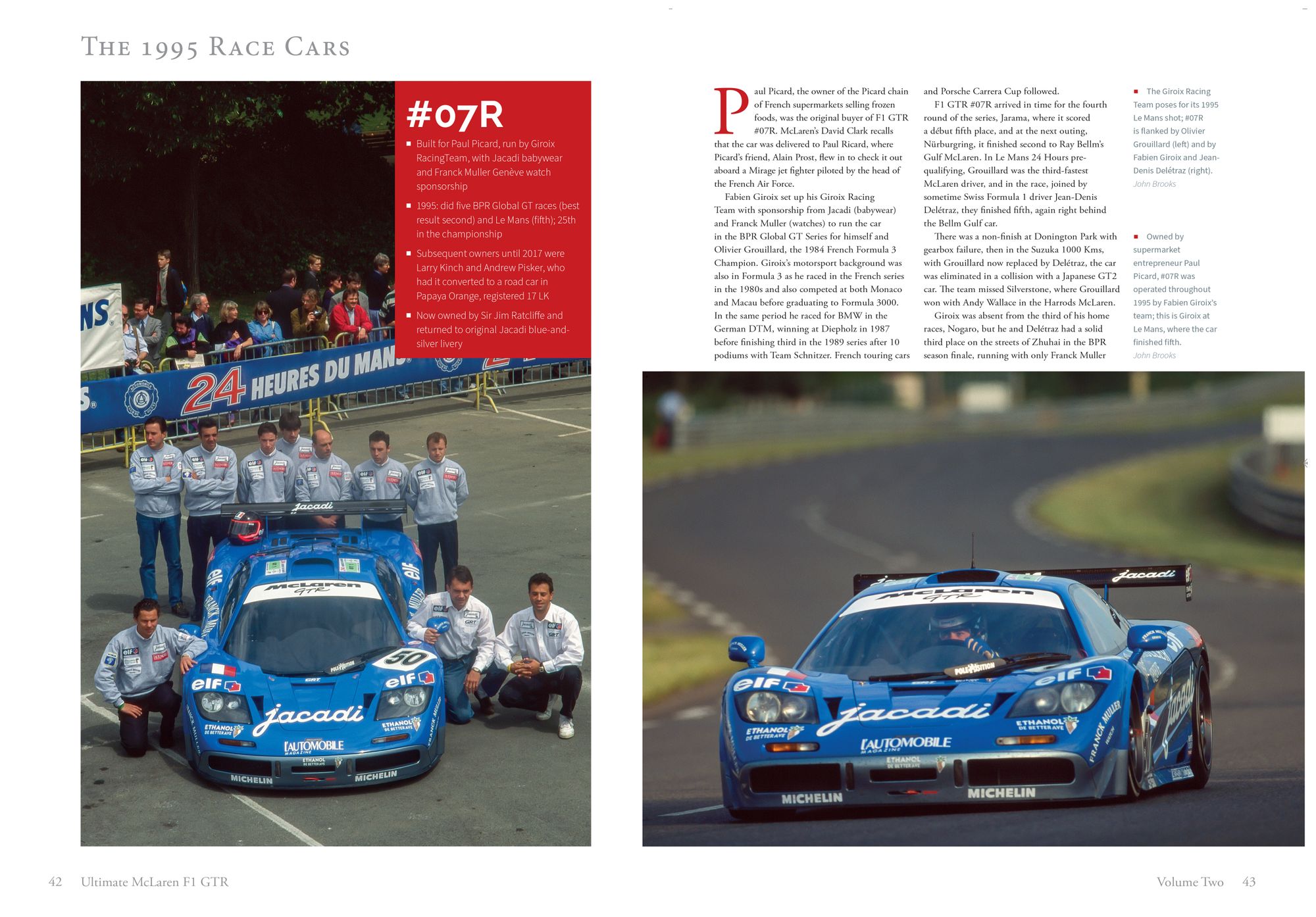While Cole’s work documenting the racing history of the GTR in Volume I of this book is excellent, Volume II of ‘The Definitive History’ contains some truly superb content for the committed F1 GTR aficionado. Each racing chassis is covered with lavish photography and in-depth information, and is a fantastic resource if you are curious about the life of a particular car. It contains biographies of important individuals in the F1 GTR story - Ron Dennis, Jeff Hazell, David Clark, and more - as well as covering some of the more important privateer teams to run the F1 GTR successfully, such as Gulf Racing and David Price Racing. There is a fascinating treatment of the Kokusai Kaihatsu Le Mans effort too, as well as Cole’s own in-depth coverage of the endurance racing drivers who piloted these special cars. You couldn’t really ask for more from an authoritative work on the F1 GTR, although there is more. Chapter 18, covering road-legal conversions of the F1 GTR, contains some brilliant photographs and interviews with owners past and present including Adrian Newey and Nick Mason, and it is particularly nice to see a chapter devoted to Paul and Dean Lanzante, arguably the world’s top restoration specialists for McLaren F1 GTRs.