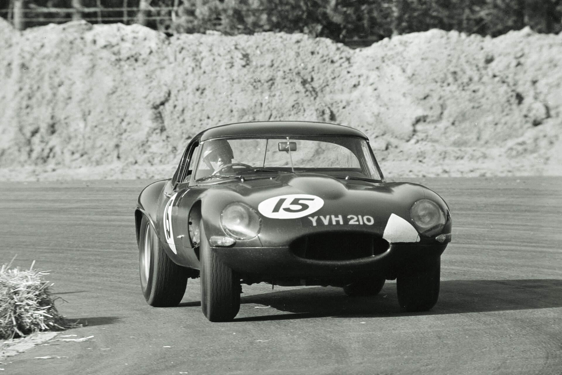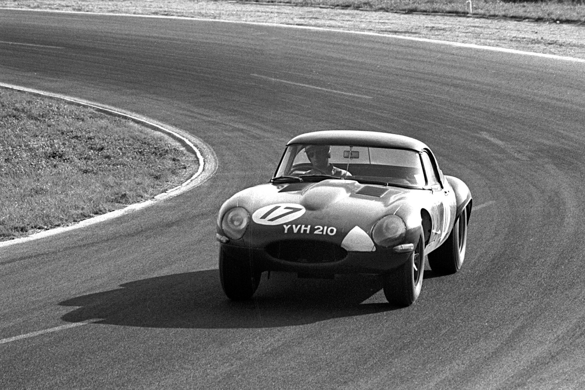 Peter in action in his 1963 Jaguar E-Type Lightweight Chassis no. S 850666. Credits: unknown / Source: Girardo & Co.