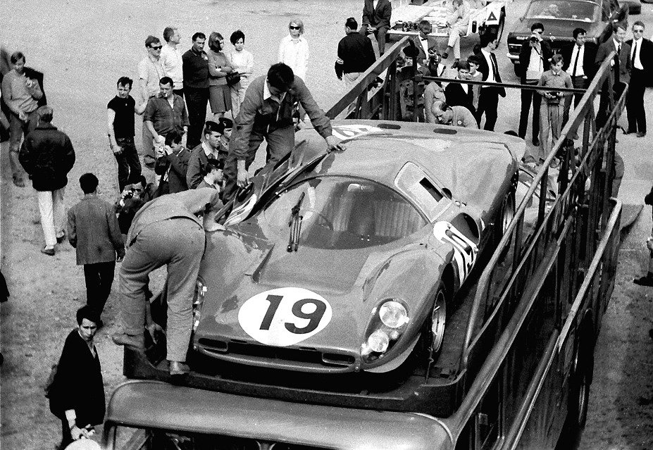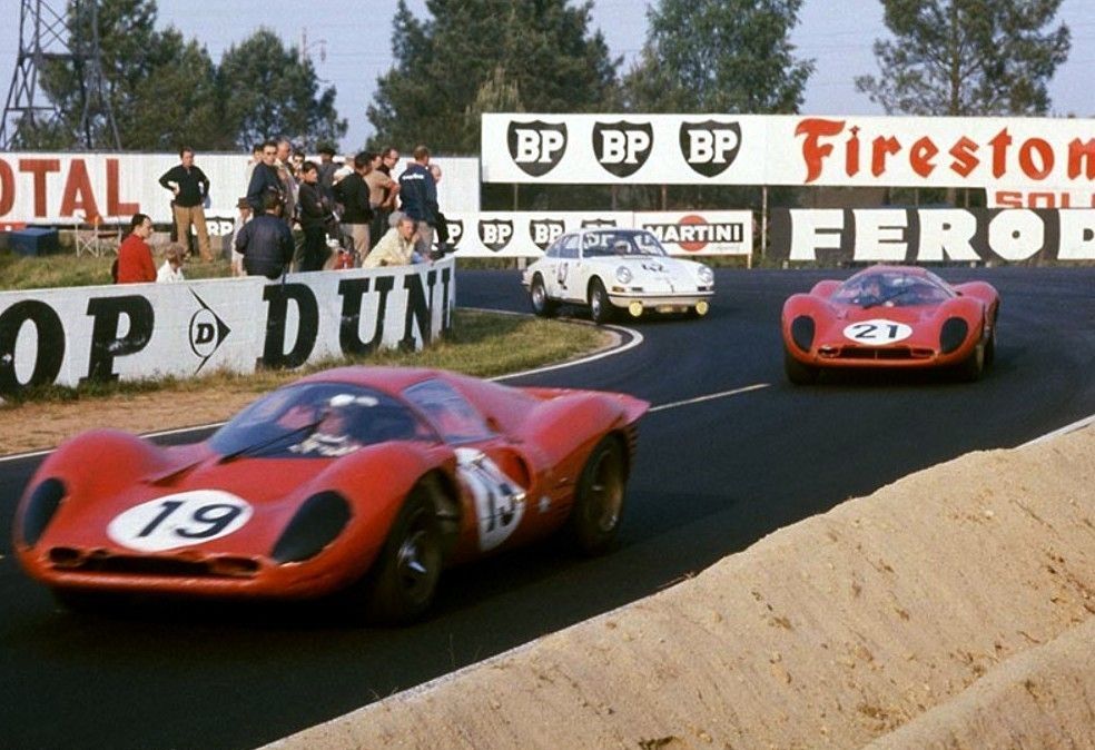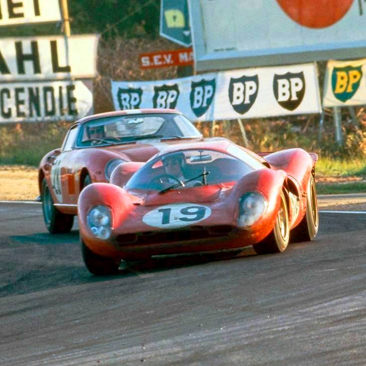 Competing at Le Mans in 1967 in #19 Ferrari 330 P4. Credit: unknown