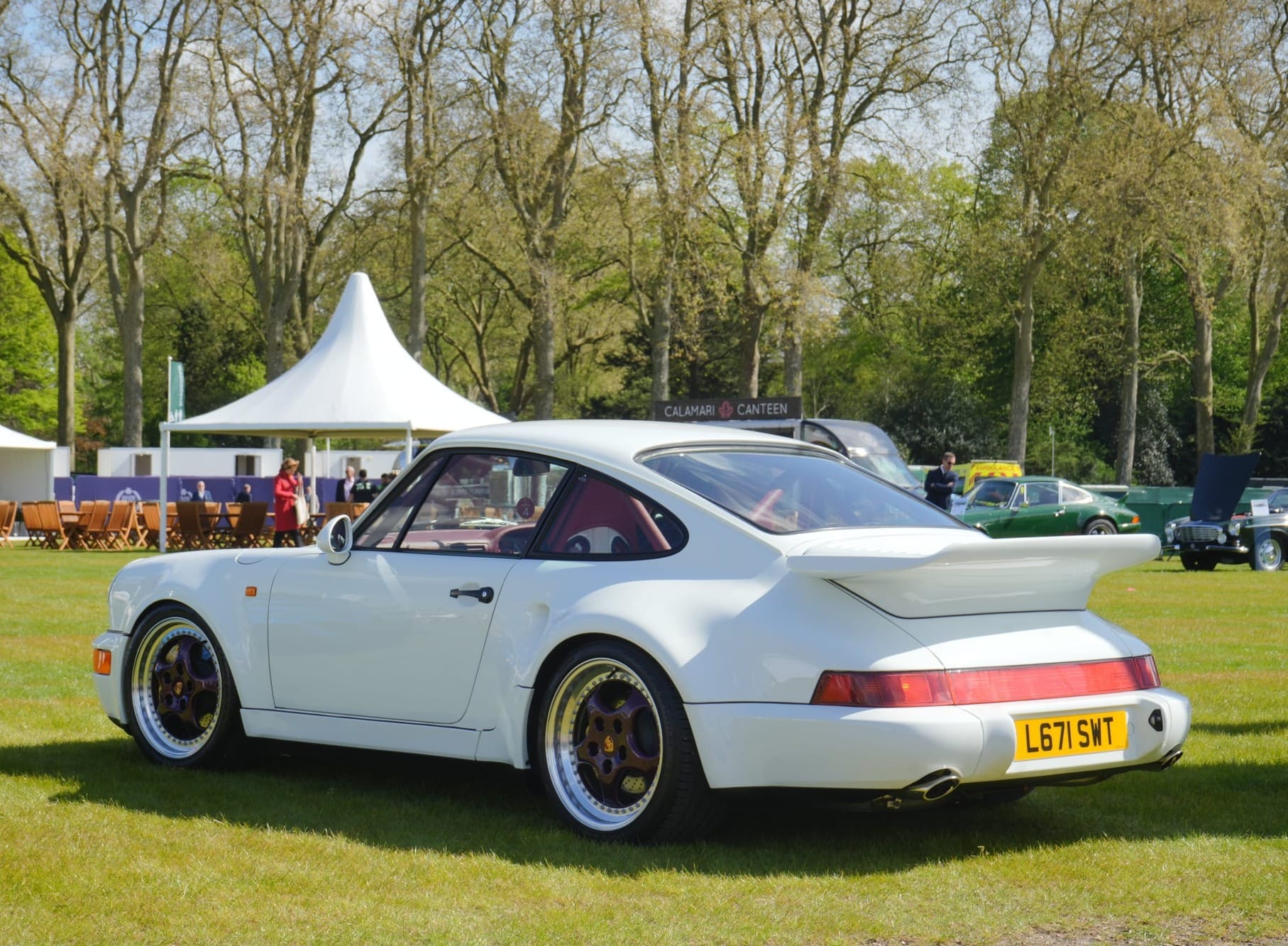 To celebrate 50 years since the introduction of the Porsche Turbo at the Paris Auto Show 1974, 911 Turbos from every generation descended upon the manicured lawns. One of the stars of the show was an ultra-rare Porsche 911 964 Turbo S Leichtbau. This was the first ever lightweight Turbo to be produced by Porsche and is one of only 11 in right-hand drive. The example presented was chassis number 86, and incredibly had covered only 260 recorded miles from new. Finished in stunning Grand Prix White with Flamenco Red interior, purple wheel centres and gold brake callipers, it was not to be missed.