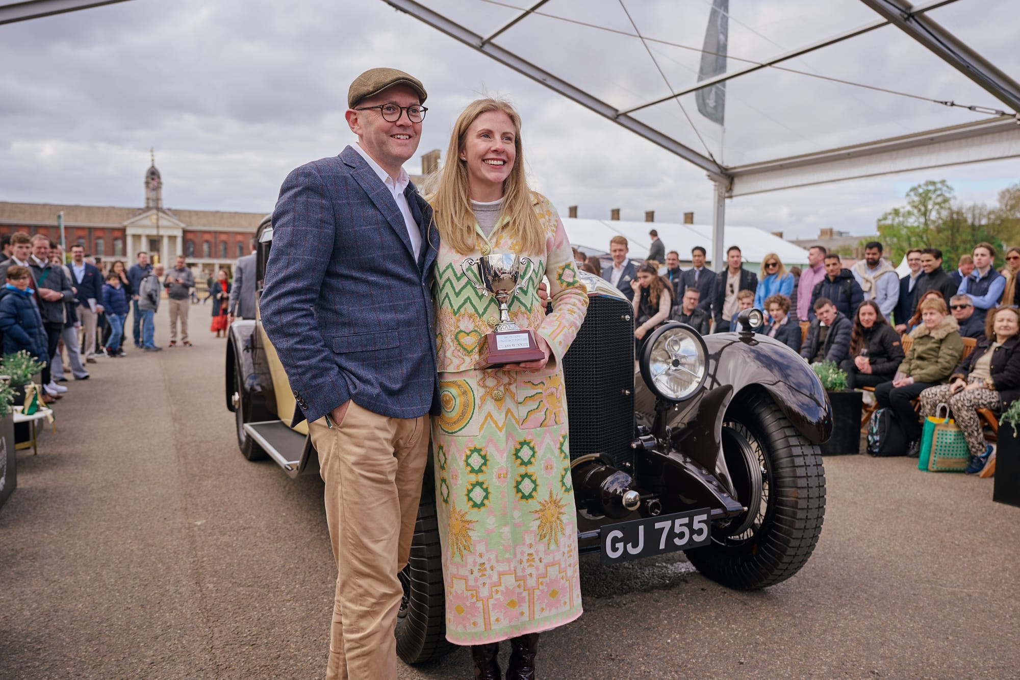 William Medcalf with his wife (right), accepting the Prix d’Honneur award for his 1930 Speed Six (left) // Credit: Salon Privé London