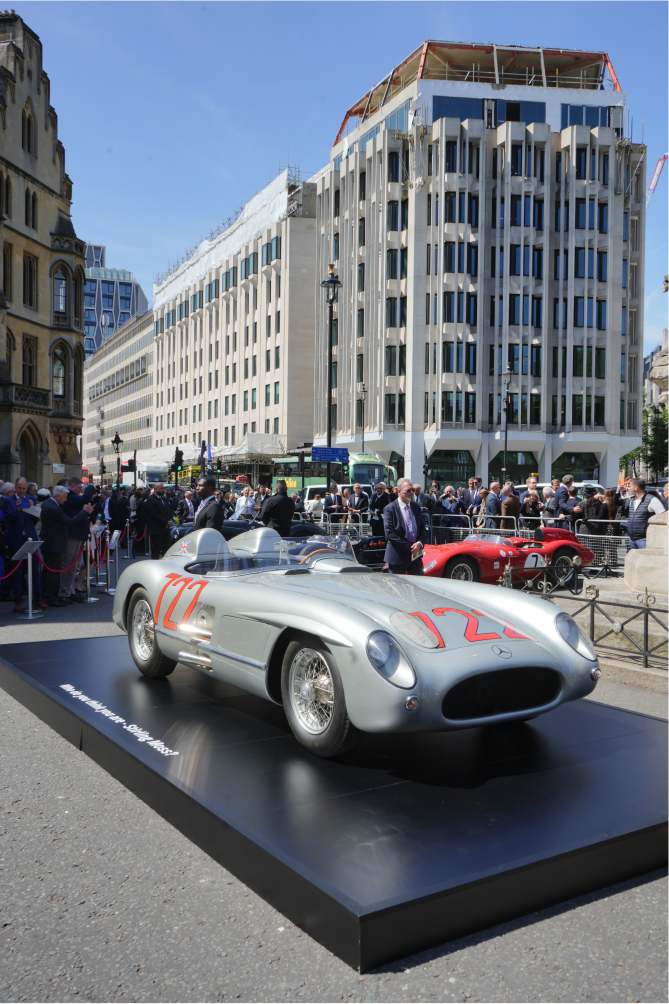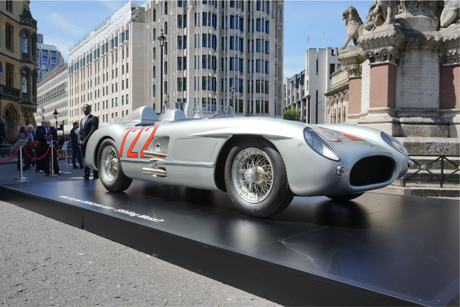 The Mercedes 300 SLR will be on display at the Royal Automobile Club in London for one week following the ceremony.