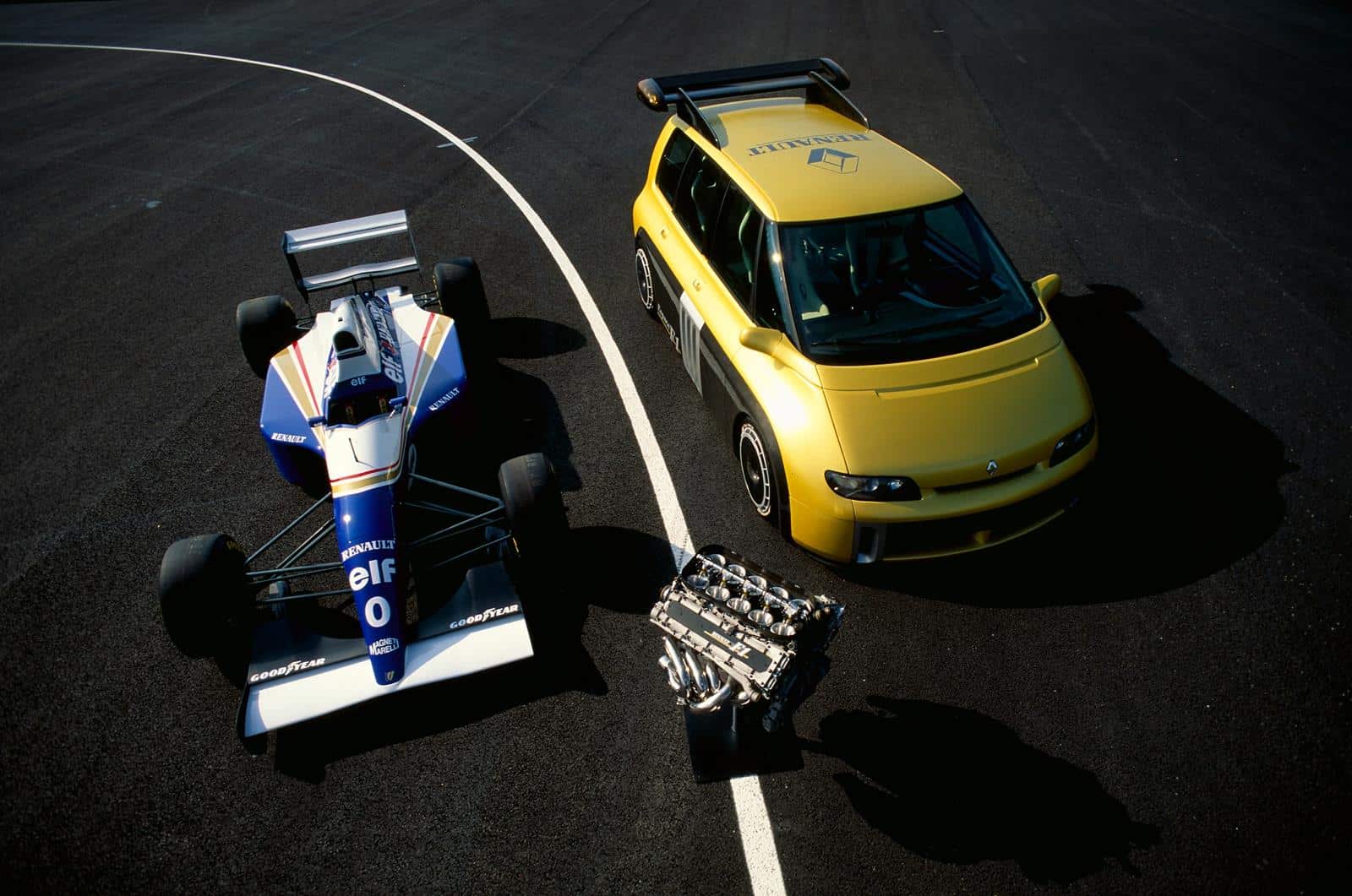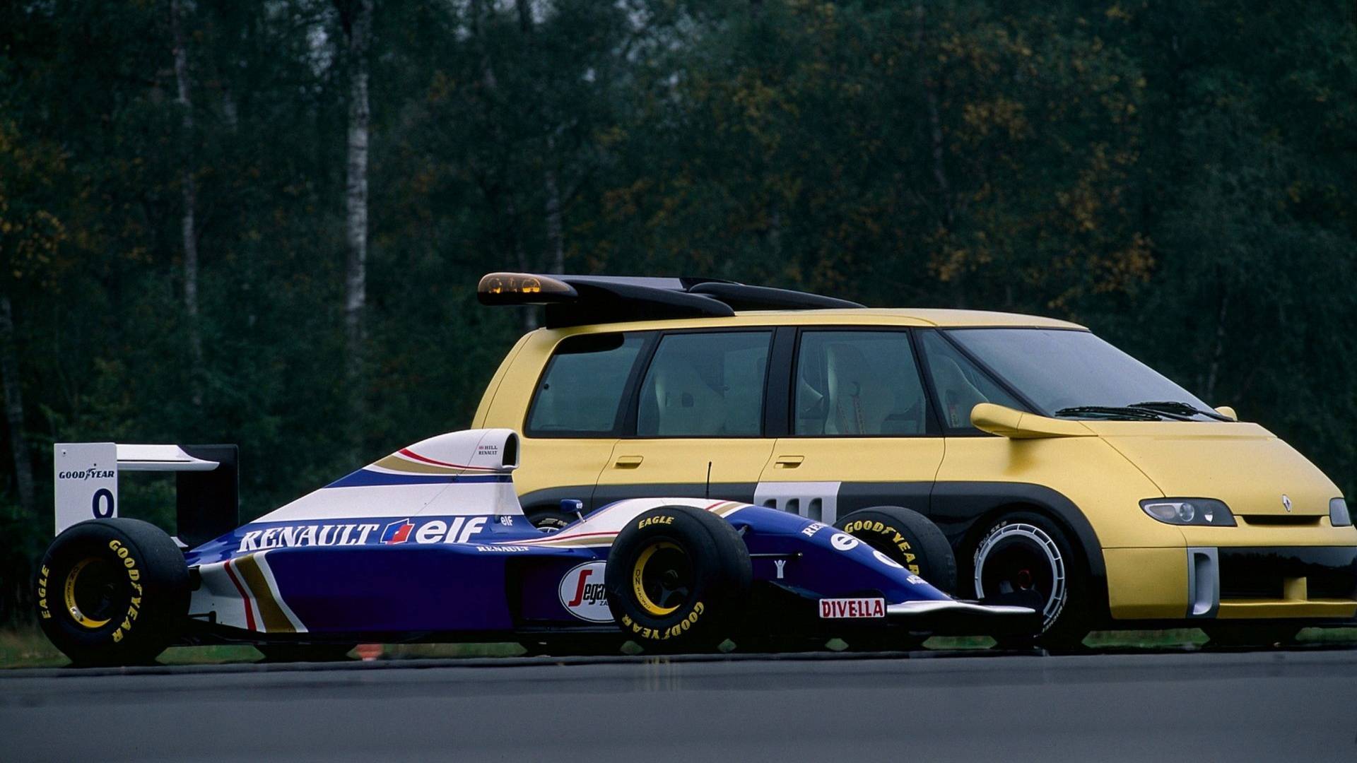 1995 was the 10-year anniversary of the launch of the Renault Espace - family transporter par excellence - onto the public market. To celebrate, Renault teamed up with the Williams F1 team to create an extraordinary one-off version of the popular MPV, whose carbon fibre chassis and aerodynamic bodywork housed the naturally aspirated 3.5l 40-valve V10 from the World Championship-winning FW14, mounted in the middle of the car and sending the best part of 800bhp to the rear wheels.