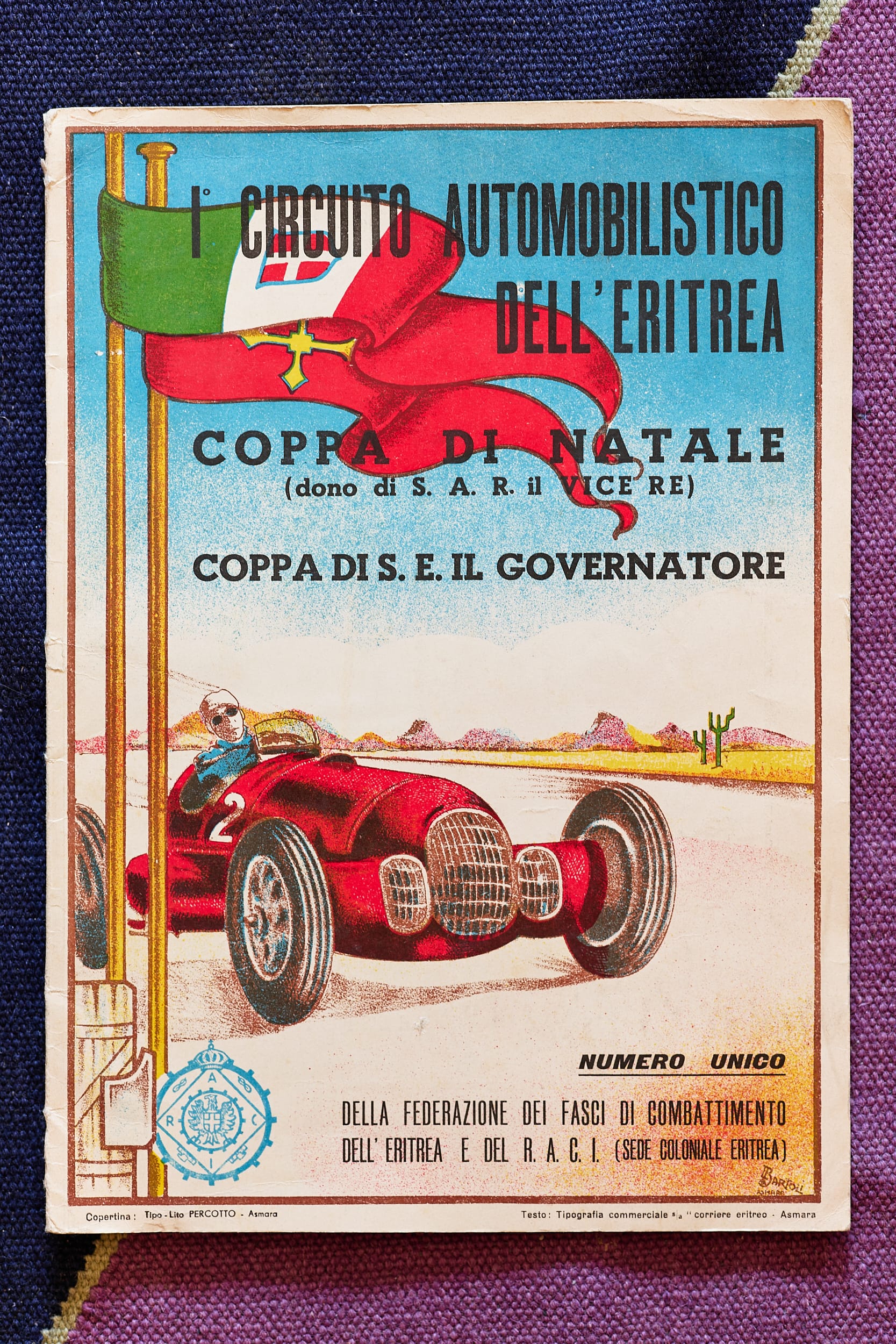 It is a fascinating car. It is a 1933 Lancia Dilambda, which was a V8 engined Lancia. It was a terribly narrow angle, 24 degree V, so you wouldn't necessarily think it was a V8 looking at the engine, but they were primarily made originally for the American market. That was the idea of a large limousine. But this one, most unusually, has been turned into a racing car, and it was done so in period in Eritrea, which of course was then an Italian colony, so the Italians had a great time there. I am not sure the natives enjoyed it particularly, so it was a slightly mixed point in history I suppose, but if we ignore the political angle, they had some amazing races around the centre of Asmara, and this was one of such cars. They had 6C's racing there, they had Alfa 8C's, P3's, Maserati 4CMs, so it was quite a grid, and this particular car we think was built in the workshops of Bigi Cristoforo, who was a restorer there.