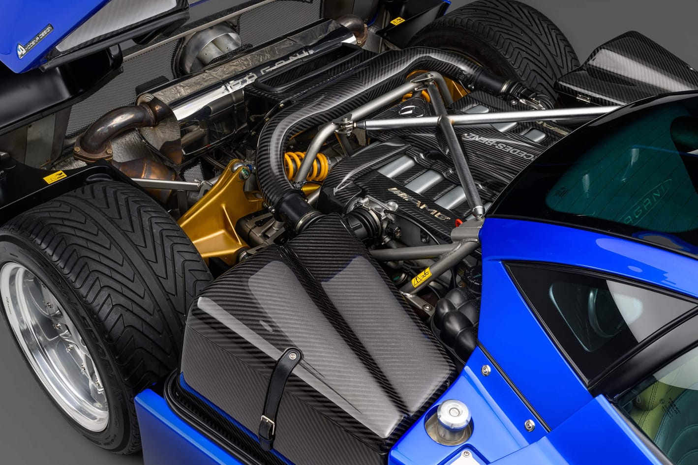 Registered in the UK later that year, the car was supplied to its first owner under an agreement that it could be used for press duties, a vital contribution to the reputation-building efforts of Pagani’s fledgling company, which at the time was producing around ten cars per year. During this period, chassis 31 featured prominently in CAR magazine and appeared with Jeremy Clarkson, before taking part in EVO magazine’s landmark 100th issue test, where it was pitched against an all-time-great lineup that included the McLaren F1, Ferrari F40, Bugatti Veyron and Porsche 911 2.7 RS.